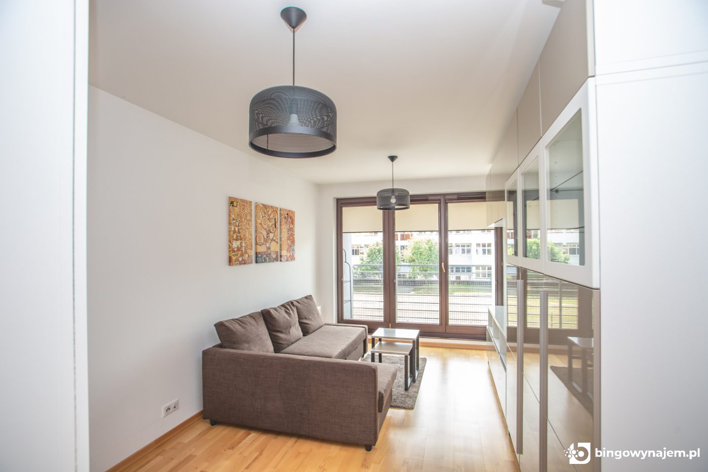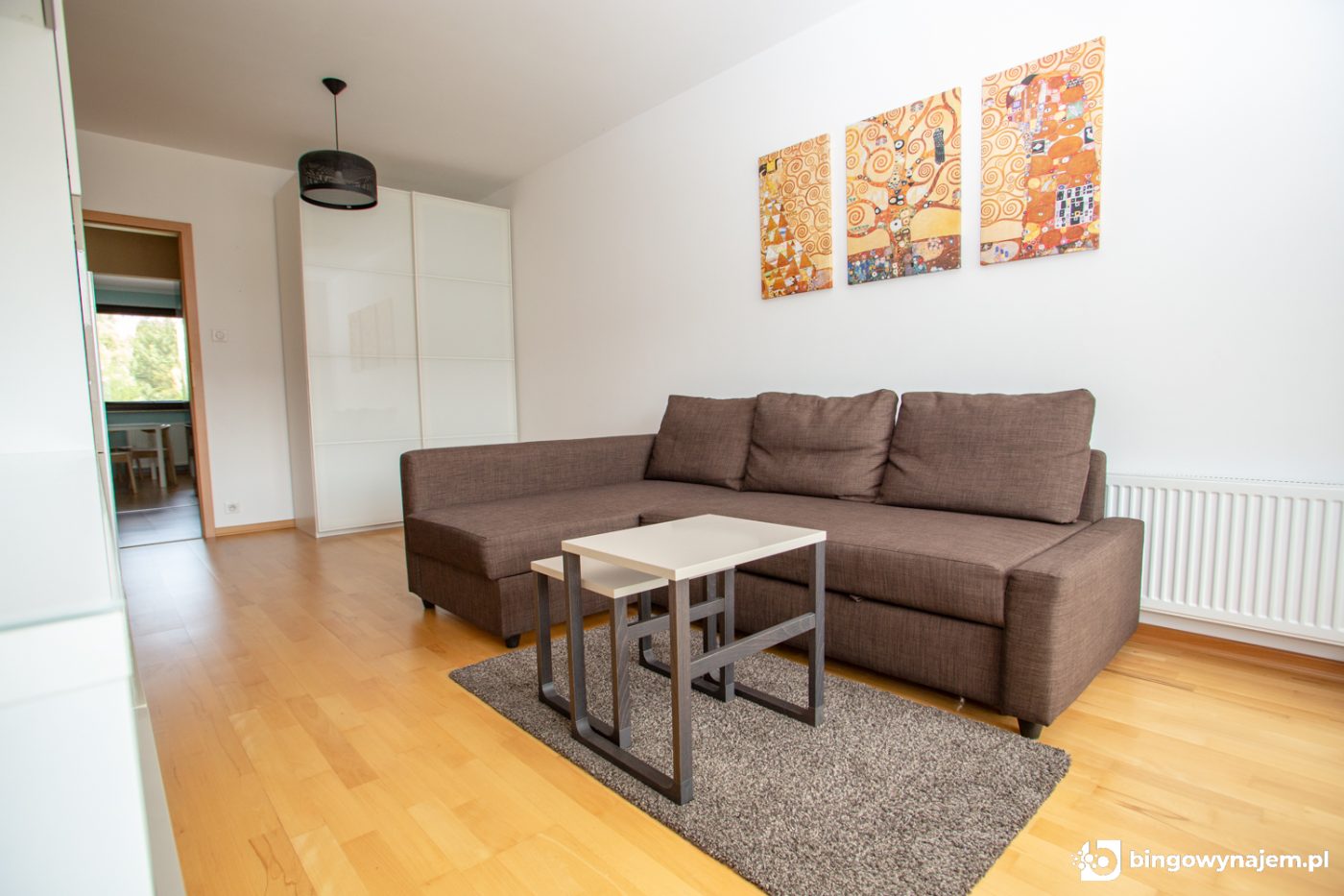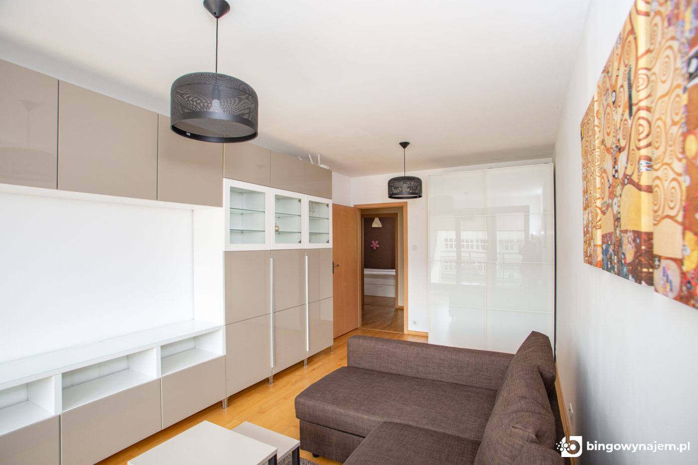 Pokój 1: Rozkładana sofa, szafy, regał, komoda
