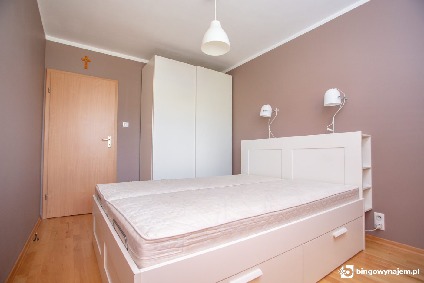 Pokój 2: Pojemna szafa w zabudowie, podwójne łóżko